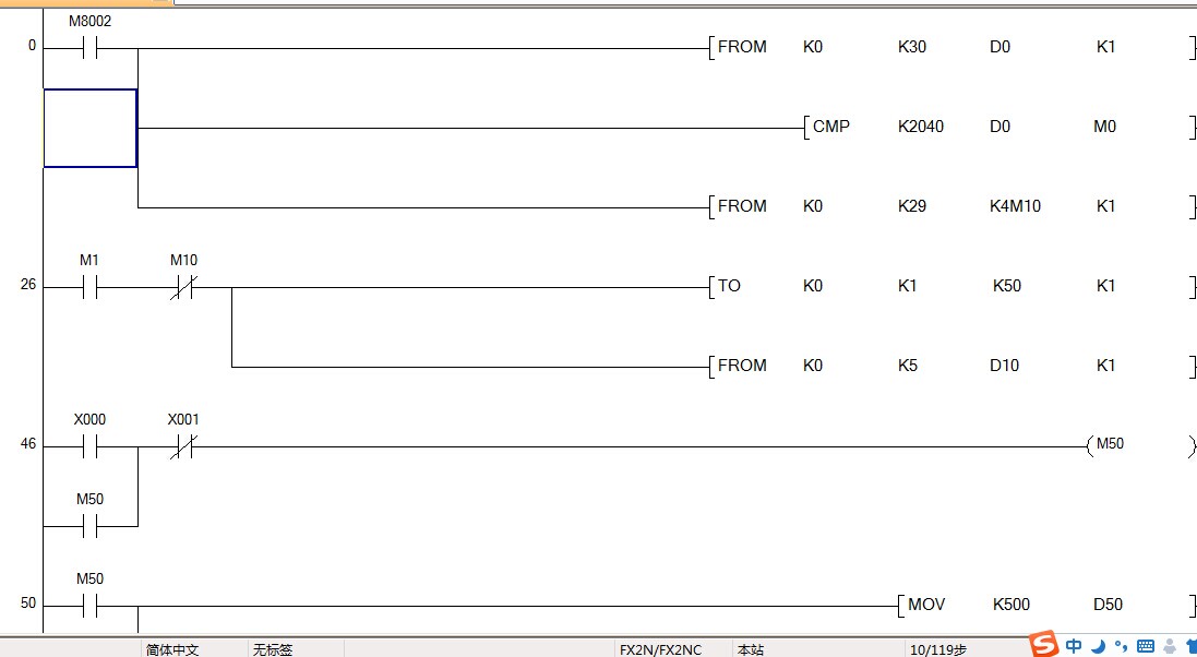 D150的變化要么是32767要么就是-32767,如果設定值為40度,測定的溫度在40度一下都為32767,大于等于40度就是-32767。下面我截了圖我的程序,編程軟件是GX WORKS2