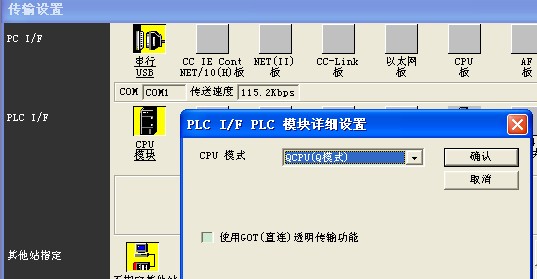 記得觸摸屏有密碼不影響透明傳輸連接PLC的。圖片是鏈接Q系列,如果是FX系列設置相同。
