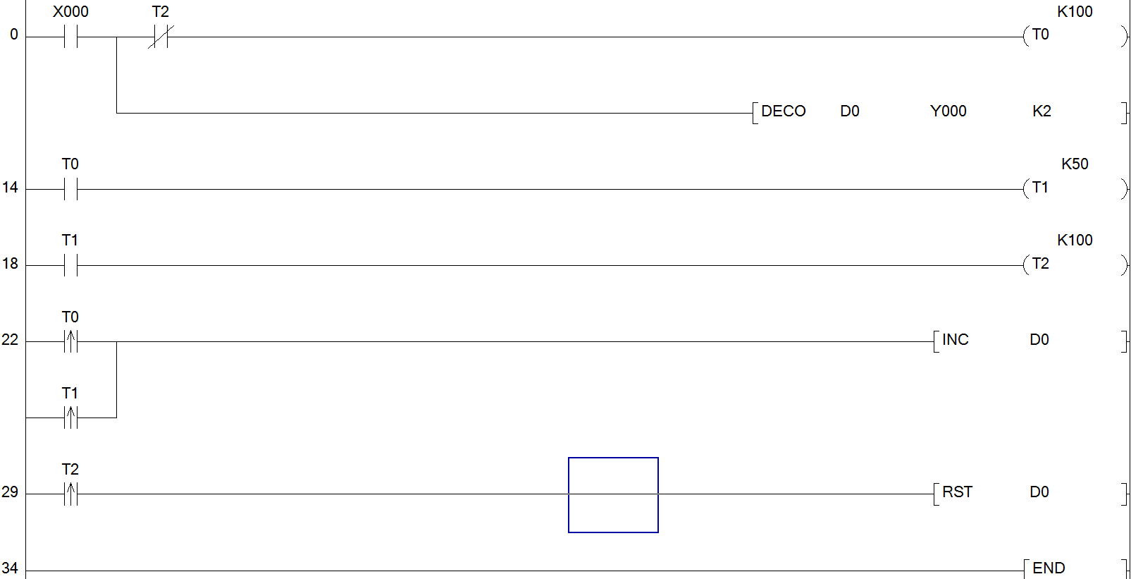 用譯碼指令實現上面動作,XO為動作啟動按鈕。