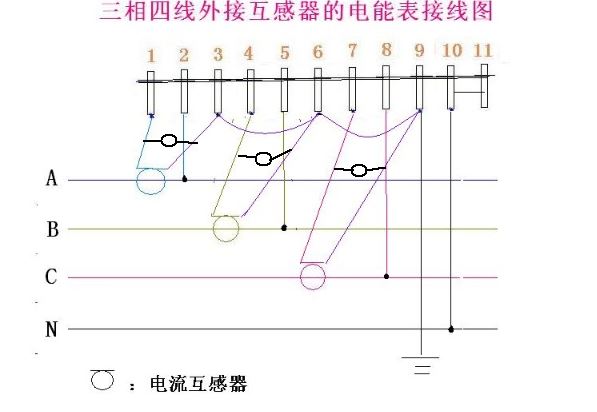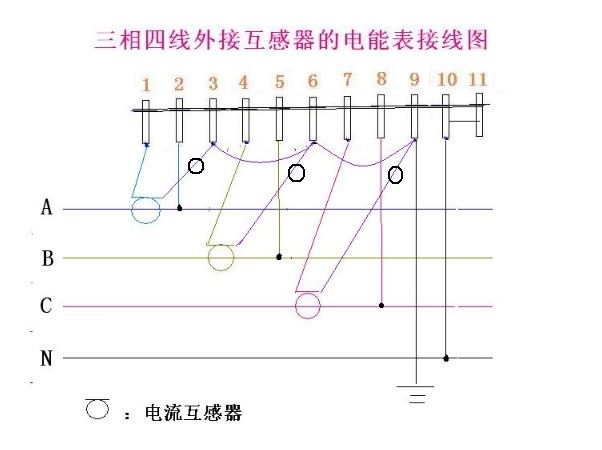 3個互感器S1分別接到電表1、3、5        3個電流表也要對應接線到3個互感器S1上       S2與電表3、6、9、和電流表的另一端連上接地      電表2、4、6、 分別接三相火線
