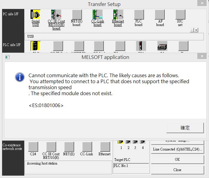 用筆記本USB線和Q03UDVCPU總是無法通訊,驅動已經安裝了,錯誤ES;01801006,不知那位大俠知道能給予指點,謝謝!