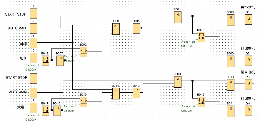 行(A和B電機(jī)的啟動(dòng)順序和 運(yùn)行時(shí)間與手動(dòng)時(shí)一致),運(yùn)行完后自動(dòng)停止?fàn)顟B(tài)。自動(dòng)運(yùn)行可以最多啟動(dòng)