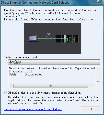 PLC是CP1H-EX只有以太網口,用直通網線連PLC,總無法連上,查看Direct Ethernet Connection 沒有OMRON的網卡選項,怎么修復呢?