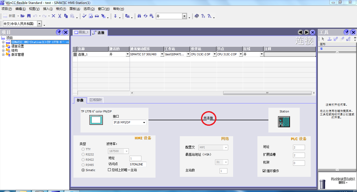 wincc里面的連接設置顯示未連接是怎么回事?求助各位大哥
