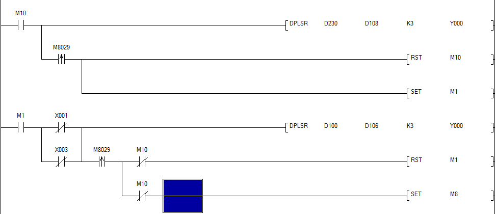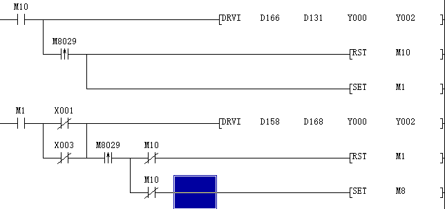 原本用的是相對(duì)定位的指令(DRVI)來(lái)控制電機(jī)的行程的,但是精度總是達(dá)不到,誤差太大了,所以就換了一個(gè)帶加減脈沖輸出指令(PLSR)可是修改完后,一試機(jī),電機(jī)變反轉(zhuǎn)了,是我程序?qū)戝e(cuò)了還是我接線有問題?電機(jī)的信號(hào)線,我只是把Y02的拿掉了,別的線路還是一樣的。請(qǐng)求各位大神幫忙指點(diǎn)一下,感謝!!!