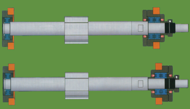 4 組裝支撐端軸承至螺桿本體,并以彈性扣環鎖上,將組裝好的部分放至支撐端外殼。