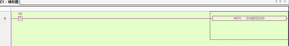 MOV       X0(D0)       D10                             x0(d0)的意思是,如果D0為0,就是把X0開始 到X17為止的16位位無件組成的數據傳送到D10里面去。D0就是X0的變址
