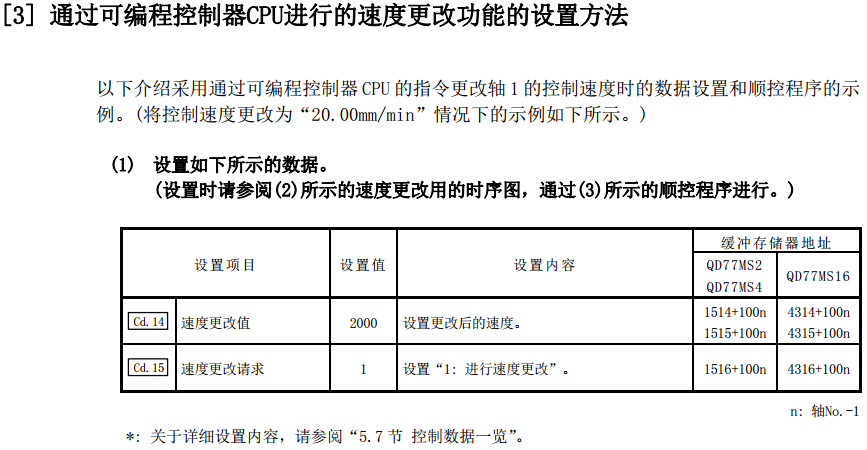 關于單軸的變速控制,我用QD77MS16軸卡控制伺服電機時,有用過。