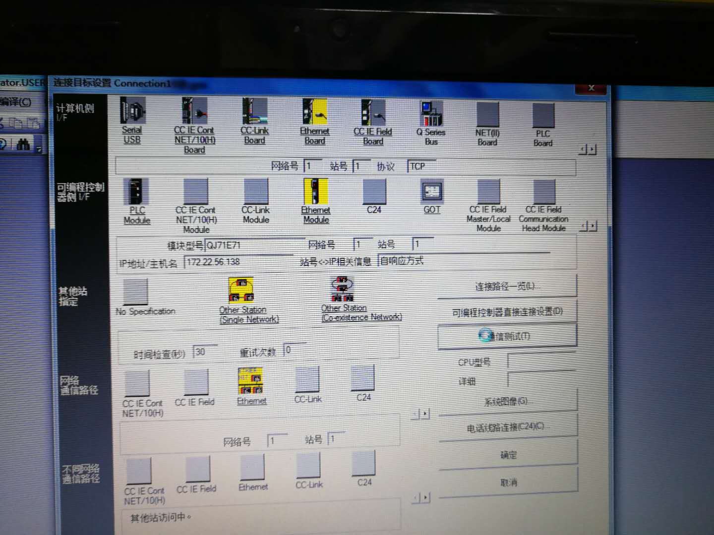 IP地址設(shè)置對了嗎,PLC和電腦的IP地址不能相同的,而且站號也不能一致才能通訊上 |