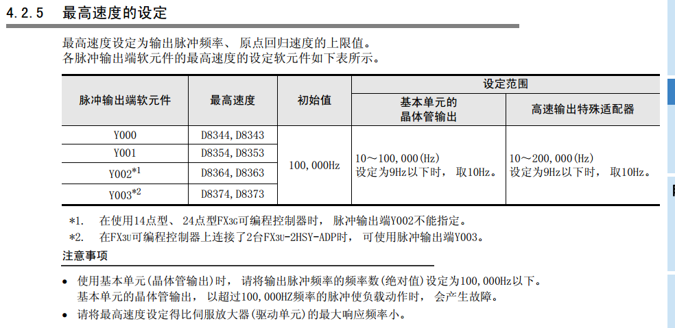 可能在我們的印象里FX3U本體只有三軸,說(shuō)明書(shū)里也介紹只有3軸,要使用Y3就要加FX 3U -2HSY-ADP,“在FX 3U 可編程控制器上連接了2臺(tái)FX 3U -2HSY-ADP時(shí), 與脈沖輸出端Y003相關(guān)的軟元件有效‘’,打雙引號(hào)的這段話是說(shuō)明書(shū)上復(fù)制過(guò)來(lái)的,我問(wèn)過(guò)好多同事和供應(yīng)商都是說(shuō)本體3軸,我們做項(xiàng)目都是這樣的,盡量能最大化利用PLC配置,合理選擇PLC型號(hào),以達(dá)到降低電氣采購(gòu)成本。所以我就買(mǎi)了個(gè)3U自己先試試,結(jié)果發(fā)現(xiàn)Y3可以定位,不過(guò)頻率只可以設(shè)置0-1800HZ,好低的頻率,不過(guò)對(duì)于我們的項(xiàng)目已經(jīng)足夠了。希望我的發(fā)現(xiàn)對(duì)于大家以后做項(xiàng)目有用。謝謝!簡(jiǎn)單測(cè)試程序也一起發(fā)出來(lái)!