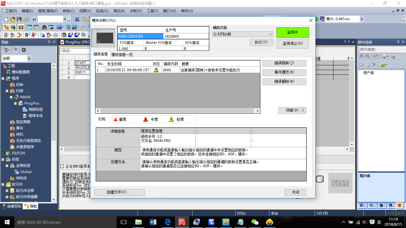 三菱的串口通訊設置問題,程序椅子沒有反饋,SM8572一直都是低電平。程序中參數設置到底哪里有問題呢? |