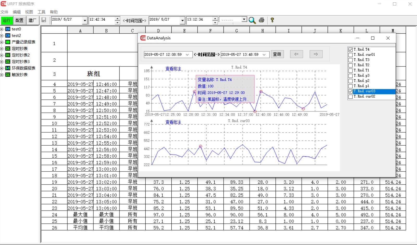 根據(jù)用戶的要求,報(bào)表數(shù)據(jù)曲線,需要添加數(shù)據(jù)拐點(diǎn)分析功能,目前該功能已經(jīng)完成,大家看看效果