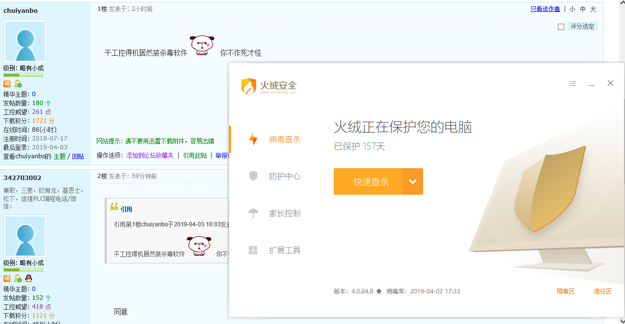 做工控就不能裝殺毒軟件,這邏輯頭一次聽說。 我的MSE殺毒軟件和那些工控軟件相處的很好,十幾年了完全沒問題。。。 |