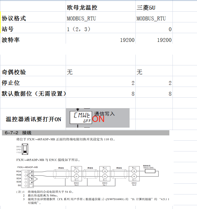 求教各位,歐姆龍E5CC溫控表支持與三菱FX5U系列的PLC進行無協議通信嗎?我看手冊上只是寫了FX3U,問了客服,客服也是按照這個手冊說,直接說不支持FX5U的,但是我感覺都是485端子,通信格式啥的5U與3U都差不多,為什么這個就不能呢,,,