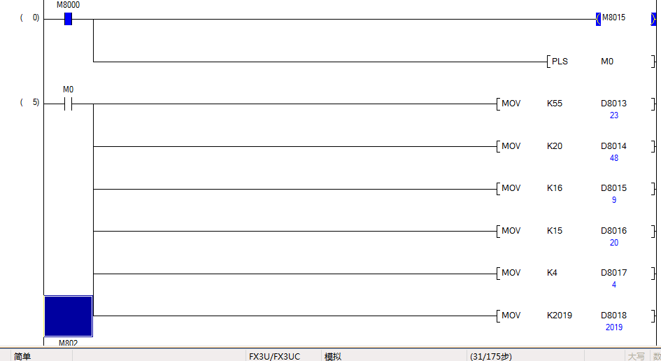 之前使用FX3U系列的PLC,時鐘寄存器使用是正常的,第一次使用用M8015觸發一下就可以了,之后都是實時時間了。(如圖1所示)