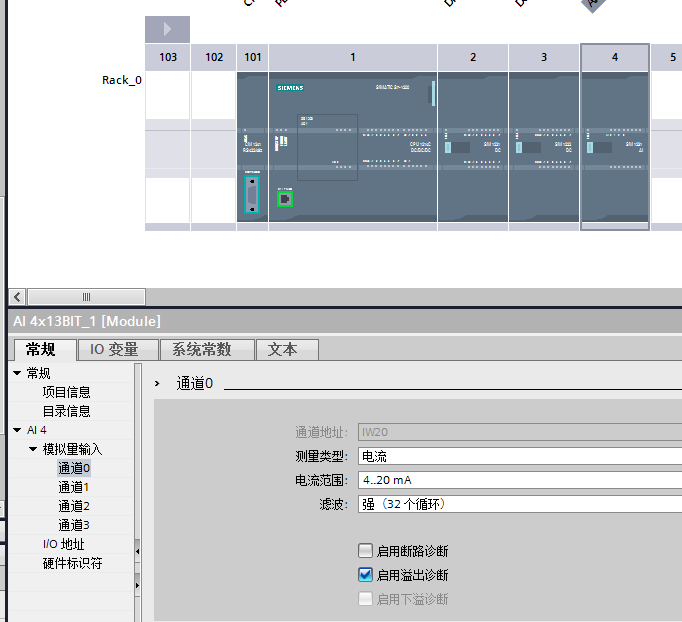 6eS7 231-4HD32-0AB0 模塊,通道0,配置為4-20mA電流輸入,顯示32767,超限,配置為0-20mA顯示值為13,萬(wàn)用表測(cè)量電壓為2.3V(萬(wàn)用表通過(guò)測(cè)量24V校驗(yàn)應(yīng)該是沒(méi)有問(wèn)題的),模塊電流采樣電阻為250歐姆,那么這時(shí)電流為2300/250=9.2mA,數(shù)值應(yīng)該是(9.2-4)/16*27648=8986。這個(gè)模塊是電工安裝的,我不在現(xiàn)場(chǎng),是安裝的有問(wèn)題,還是模塊硬件設(shè)置有問(wèn)題呢?