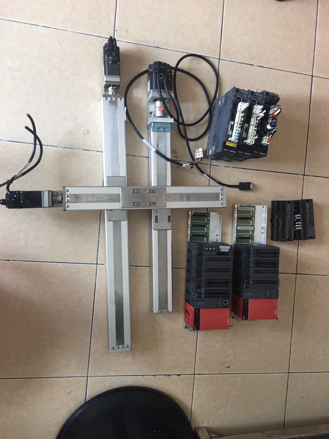 出原裝正品,三菱Q系列PLC,FX3U-16MT,三菱B系列總線伺服、A系列脈沖伺服,拆機日本滾珠滑臺轉動順暢精度高,安裝100瓦伺服,配套的,也可以改十字滑臺,配線齊全到手直接用,學習上機都可以,支持淘寶,到付,學習提供部分定位運動模塊程序資料,有意QQ細聊724438166