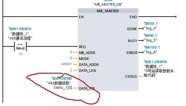 DATA PTR地址應該是 P#DB4.DBX0.0 WORD 1