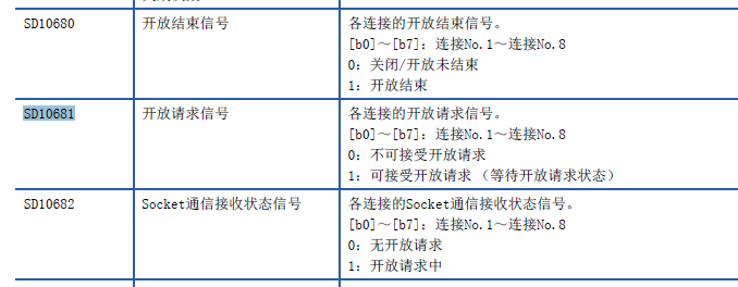 如果PLC是客戶端SD10681在OPEN指令之后為ON,CLOSE指令之后為OFF。你那個程序的意思是,如果服務器發起斷開,那么SD10680會有一個下降沿,然后PLC就使用CLOSE復位SD10681,以便于下一次打開,否則無法再次使用OPEN指令