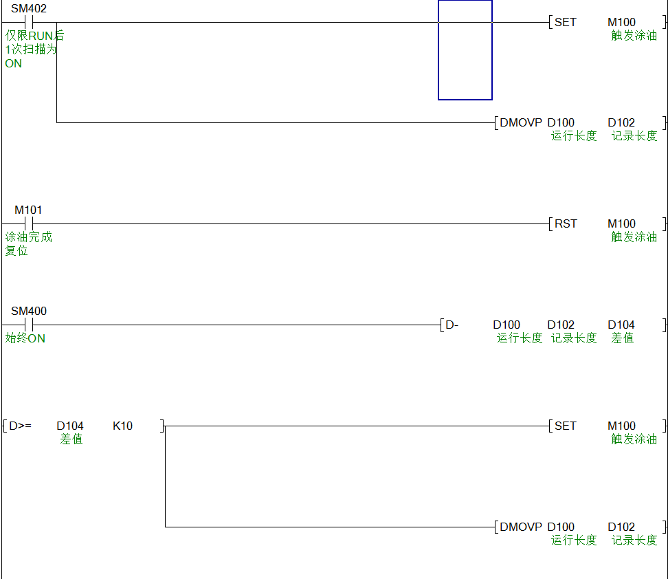 運動軸運行長度一直累加,我想讓設(shè)備行走10米,輸出一個信號潤滑一次。也就是逢10輸出一次信號。