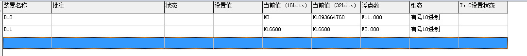 使用此命令以浮點格式顯示數據。小端法。使用2個寄存器。