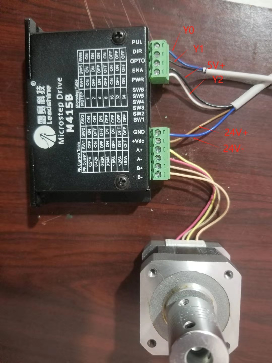 Y2使能不能輸出,電機是兩組線圈用萬用表測量,一組接A+A-,一組接B+B-,不用分那根線是A+或者A-,B+或者B-;OPTO接5v+,或者24V+(但是要接在Y0Y1線上串2K電阻),PLC輸出COM接5V-(或者24V-),Y0接PUL,Y1接DIR