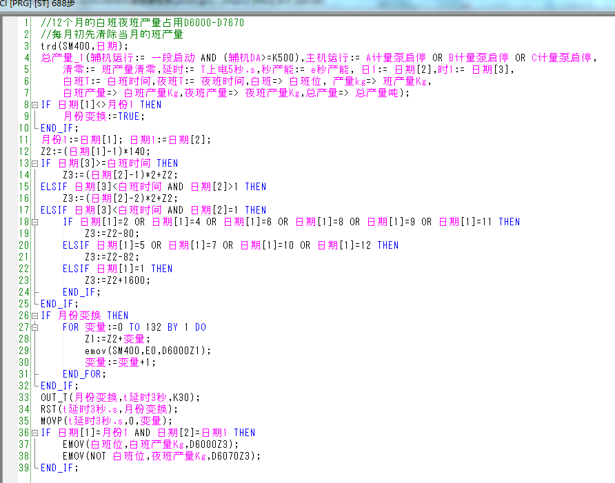 三菱ST寫的統計今天和昨天每小時產量,請多多指教!!!!!!!!!!!!!!