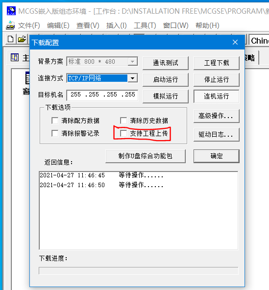 如何舊的觸摸屏在下載的時候,勾選將支持工程上傳。將無法上傳程序
