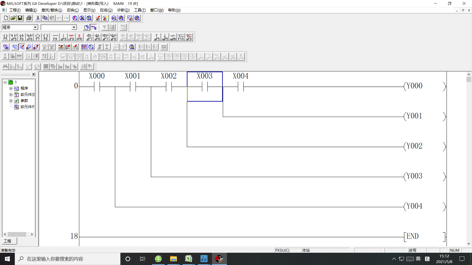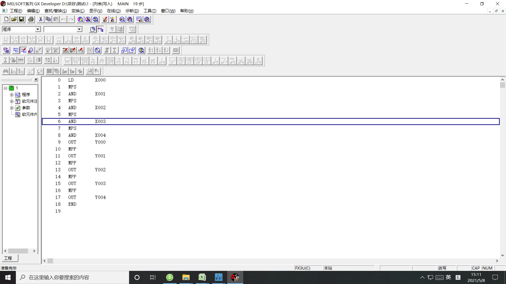 教材有問題,X2,X3,X4的操作碼也要用AND,還有現在人都用梯形圖,學用指令寫程序沒有意義。 ![]() |