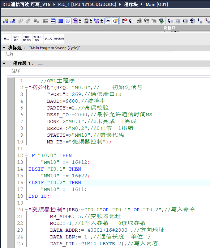 S7-1200和臺達VFD-M變頻器Modbus-RTU通信 修改變頻器方向 頻率  讀取變頻器 輸出電壓