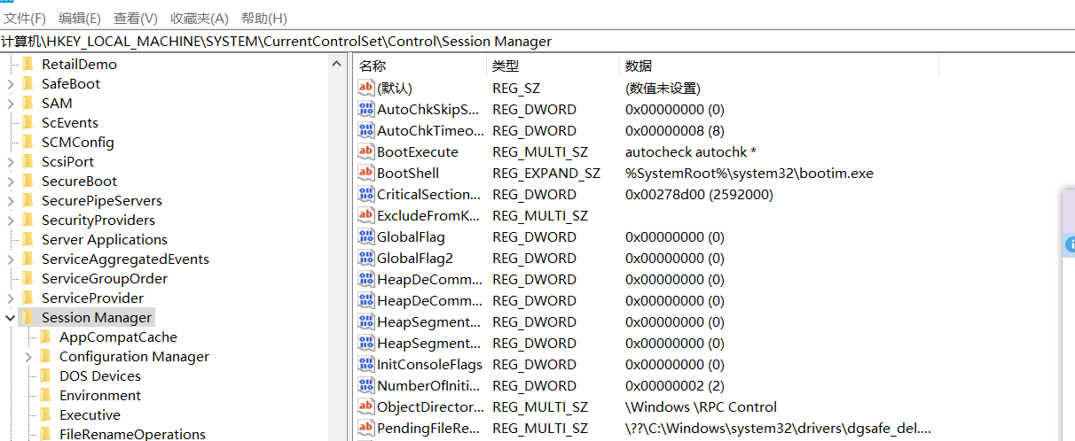 第三步,按照下圖中下方的路徑(HKEY_LOCAL_MACHINE\SYSTEM\CurrentControlSet\Control\SessionManager)