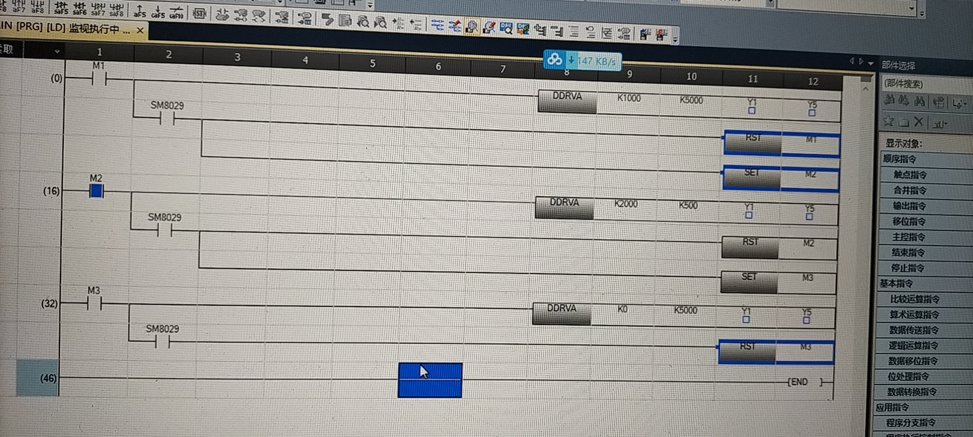 M8029在指令完成時有一個掃描周期是ON的:執行M1語句完成時,同時跳到M2-》同時跳到M3-》復位所有