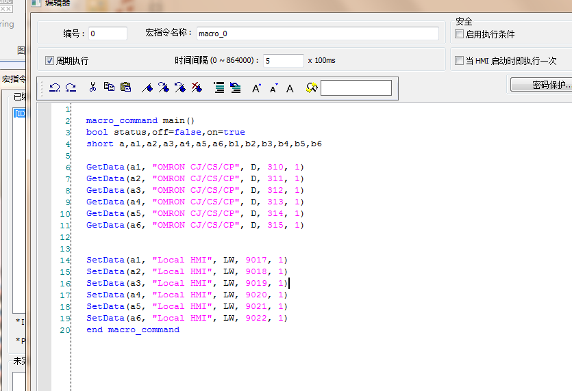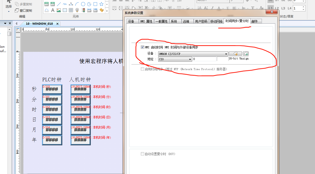 威綸TK6051ip的人機沒有時鐘保持功能,斷電后時間丟失,無法準確的追蹤報警信息,針對這一問題在不更換觸摸屏的情況下通過宏程序實現時鐘同步(威綸官網客服針對這一問題給出的解決方案是:通過資料傳輸來實現這一功能,但是本人親測無法實現,數據寫入后會被瞬間復位)
