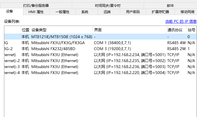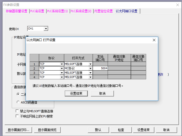 我一臺威綸MT8150IE連接了6臺PLC ![]() 其中4臺是通過交換機用網(wǎng)線連接的 請注意PLC以太網(wǎng)參數(shù)設(shè)置里面選擇MC協(xié)議然后設(shè)定端口號與觸摸屏端口號對應(yīng)即可 |