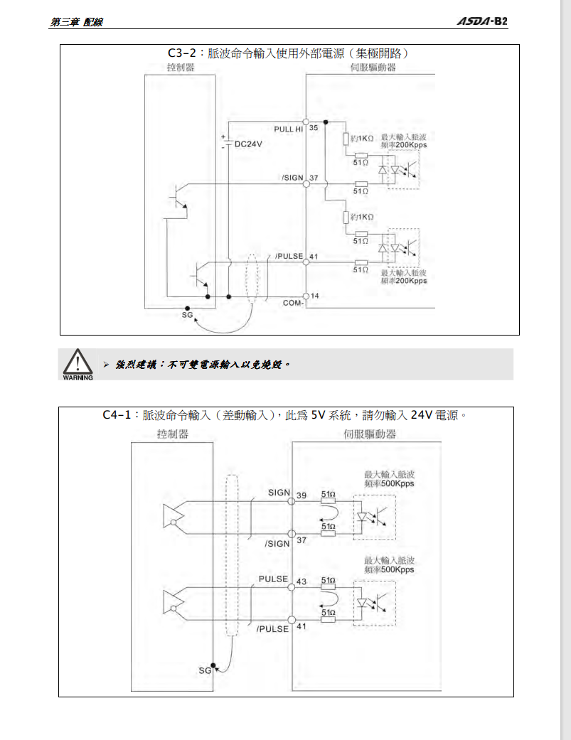 引用引用第9樓我愛工控于2023-02-03 11:30發(fā)表的 :脈沖形式驅(qū)動是2對應模塊的PULSE\SIGN形式。程序有脈沖輸出但伺服沒收到脈沖。接線就那么幾條也對換過。不知道問題出在哪。頭疼。。。。。。