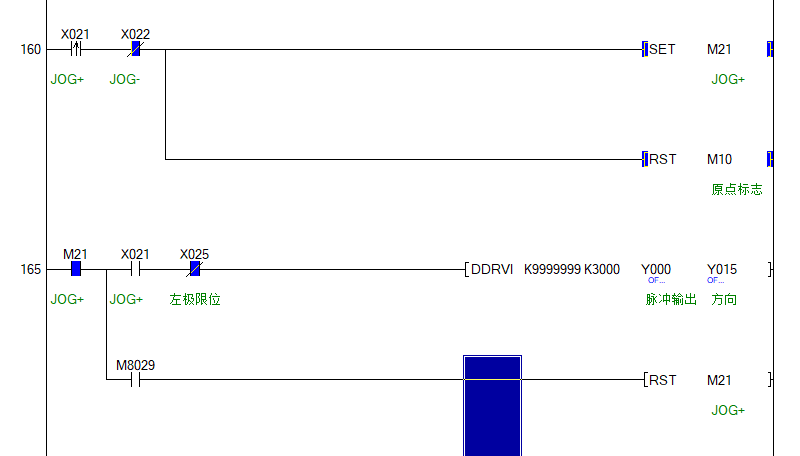 這個是JOG,相對定位。復啥味。不應該有復位的想法,而且寫X21 上升沿和SET M21也是沒理解JOG的用法,多次一舉。直接安裝說明書上的程序來練習少走很多彎路。X21直接對著定位指令多方便。