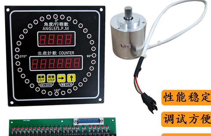 可以利用用編碼器角度來做顯示,觸摸屏指示燈讀取裝置為數據地址,到對應角度數值時相應設定數值的指示燈亮