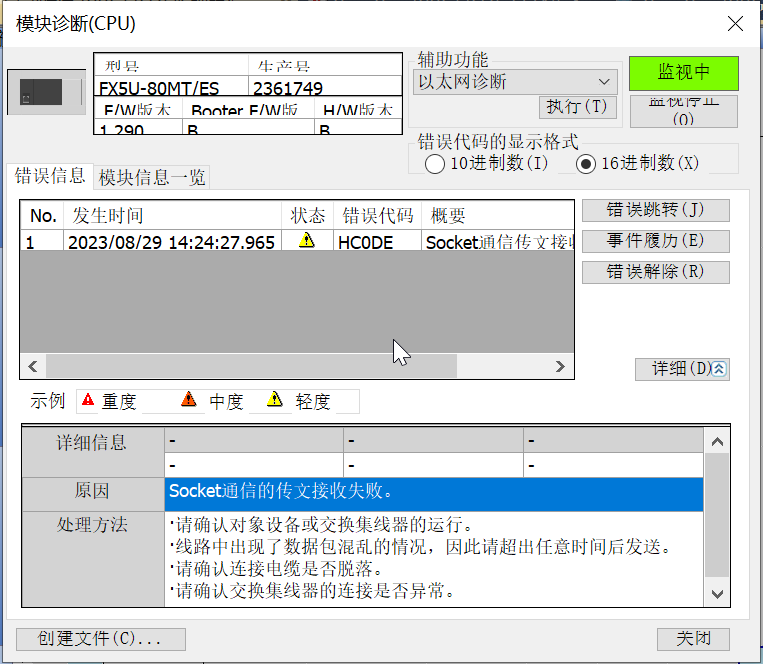 三菱FX5UPLC和電批控制器用Socket通訊,,PLC做客戶端,,但是每隔一段時間PLC就報Socket通訊傳文接收異常,,不知道是哪里出了問題,請高人指點(diǎn)