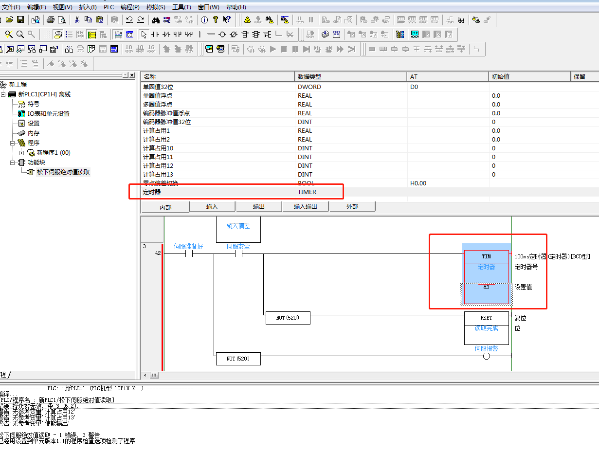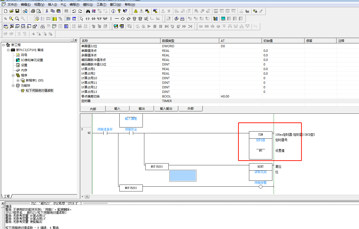 CP1H有時候出現很多奇奇怪的,都無法編譯,比如功能塊里面不能直接使用D0,非要轉成自定義的變亮,還有這個定時器也是非要16進制的
