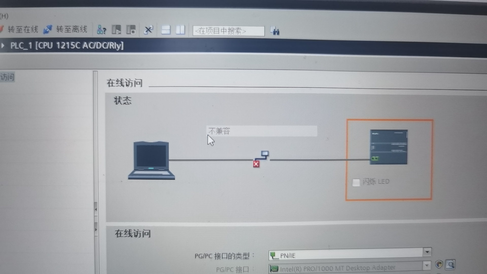 博圖安裝在虛擬機中,在虛擬機中可以ping通PLC,但是在博圖中對PLC無法進行下載操作,連接提示也是顯示不正常。