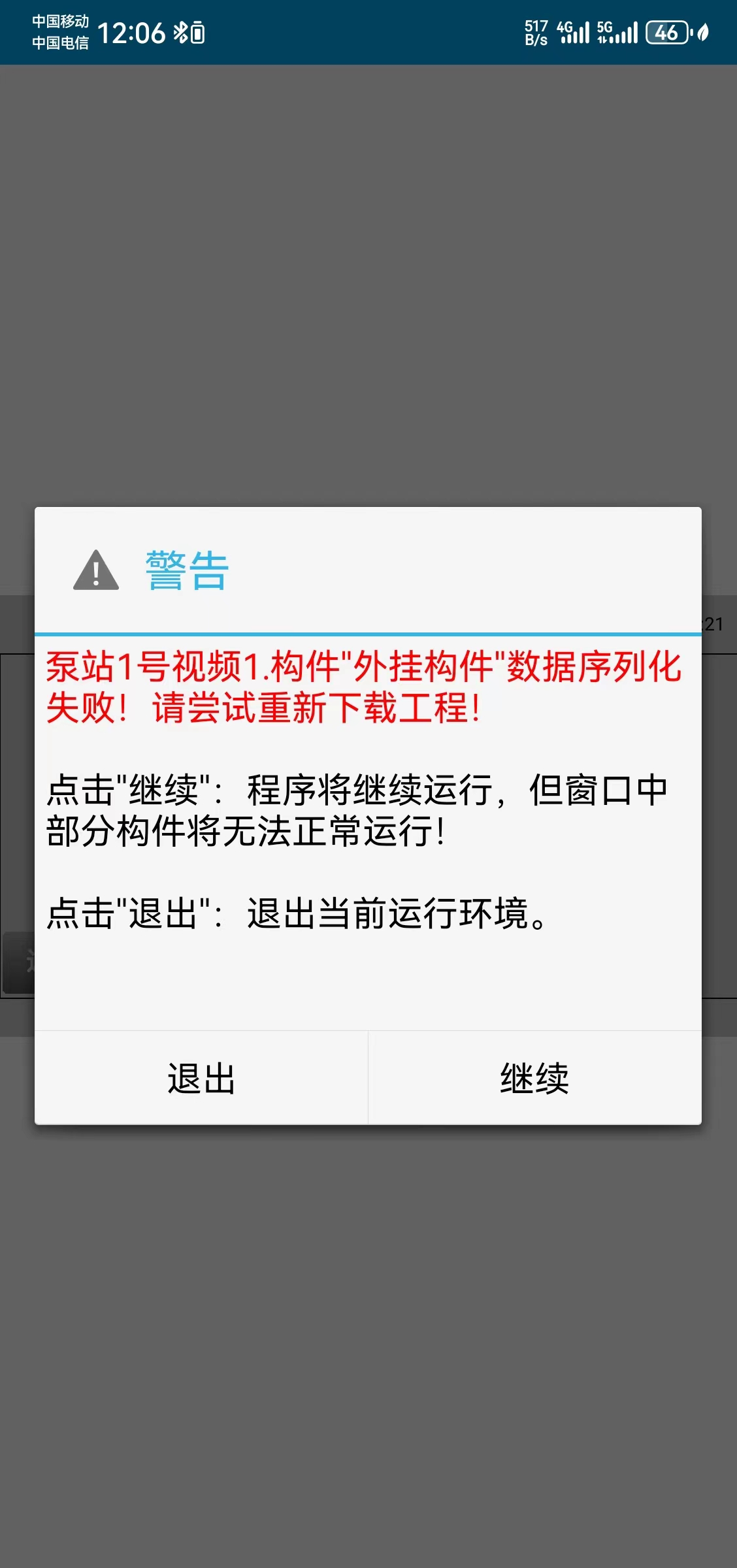 MCGS的物聯網屏,接入海康威視的攝像頭,網絡協議rtsp。現在觸摸屏上可以看了,但是在電腦端和手機端的物聯網助手上點開攝像頭就會提示構件,外掛構件數據序列化失敗。請重新下載工程。重新下載沒用,工程點擊其他的都沒問題。有大神幫忙下嗎?