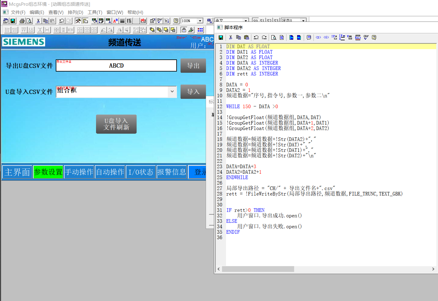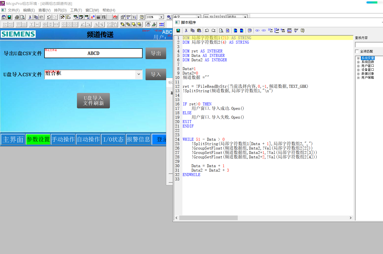 觸摸屏用腳本寫U盤導入導出csv文件到PLC,比配方有優勢,傳輸數據量大,操作方便。