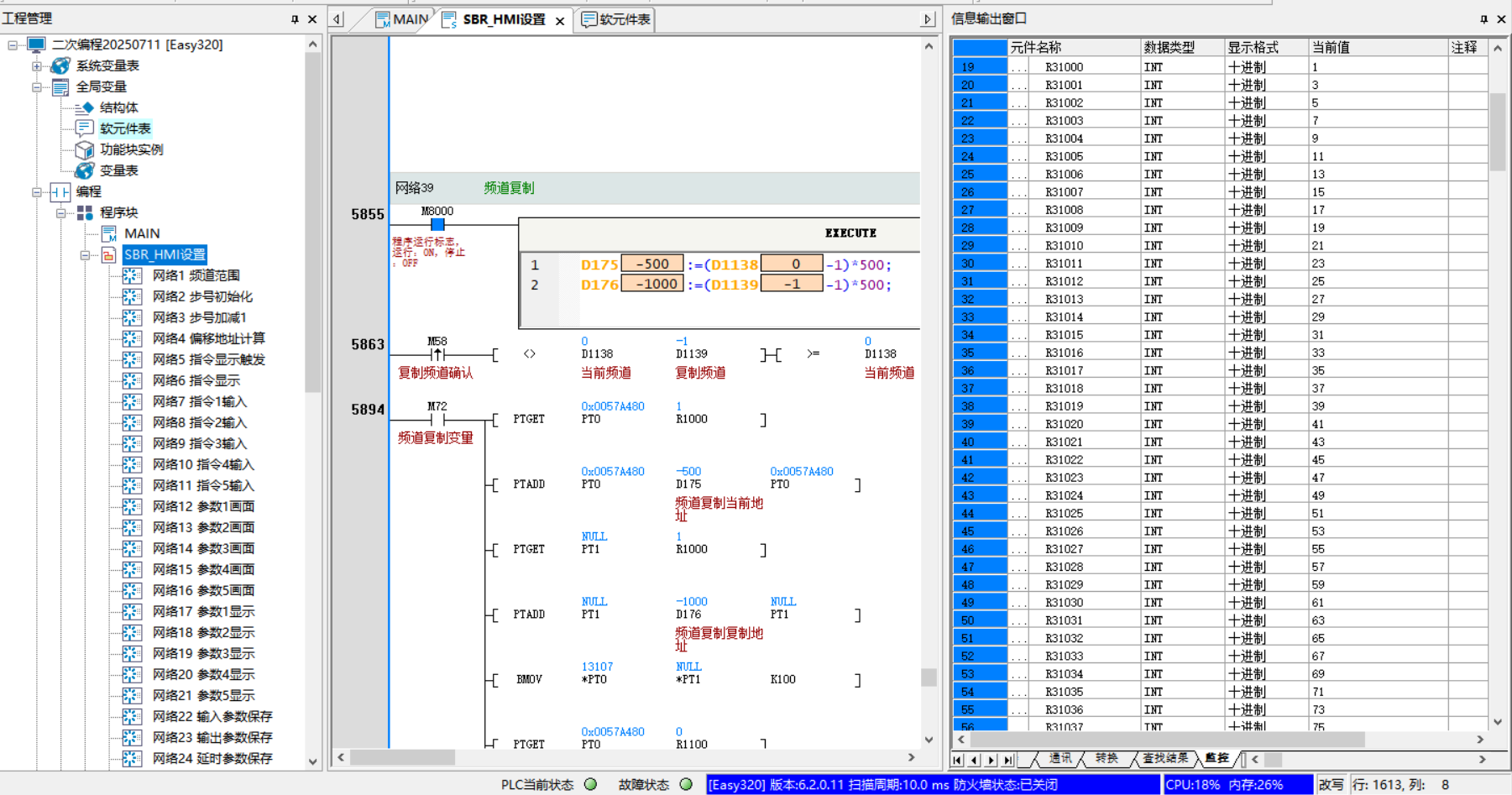 為了降成本,把測試設備西門子整套物料換成 昆侖通泰HMI 和匯川easy320 PLC,昆侖通泰HMI含稅價500元,匯川easy320含稅價700元,伺服換成步進電機一套含稅價150-350元,換完整套二次編程價格很低,匯川easy320 PLC內存比西門子1200G2大一些,可以寫60個頻道,每個頻道100步。昆侖通泰觸摸屏組合框控件和西門子觸摸屏一樣,可以在組合框里寫1000多條不同的指令選項,多工位使用時沒有指令選擇限制。優化設備性能,擴充了功能指令,匯川Easy指令速度比西門子快很多,掃描周期快操作更流暢。匯川Easy系列PLC編程和基恩士三菱一樣,程序編寫很簡單,匯川軟件好用一些。