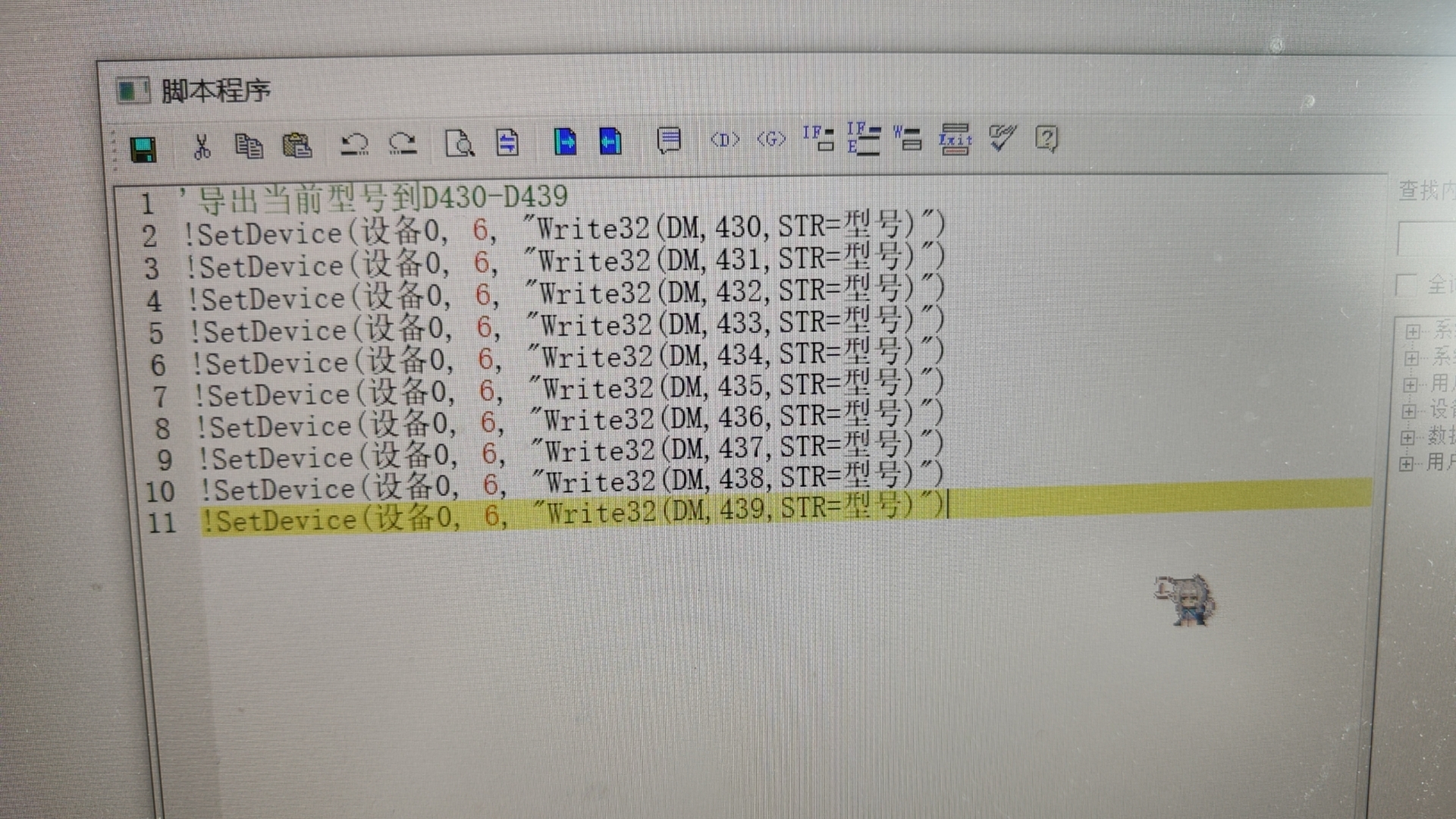 我這軟件的幫助里看到的這段腳本,不知道現(xiàn)在可不可以(因?yàn)檫@個(gè)PLC不在我手上) ![]() |