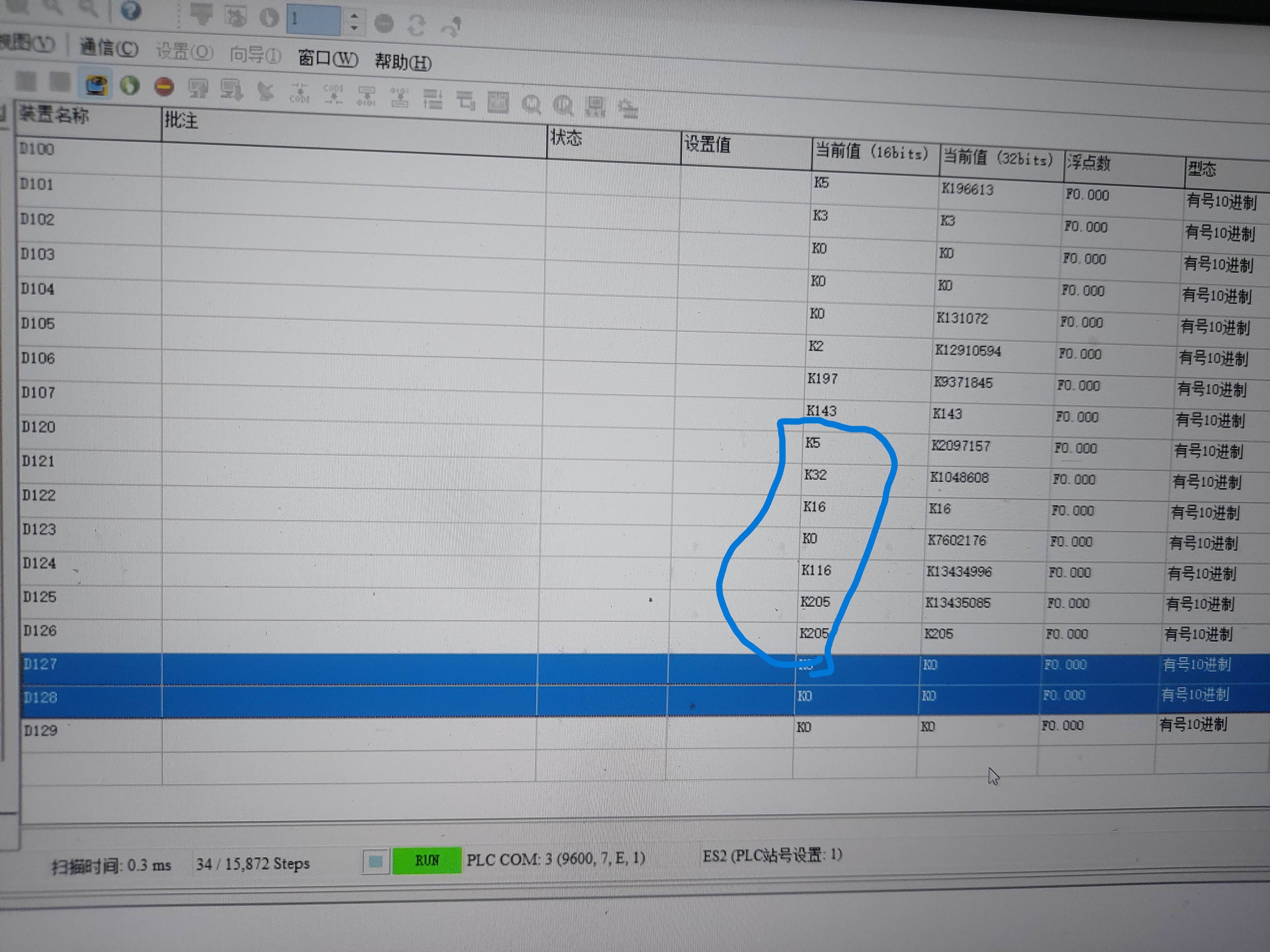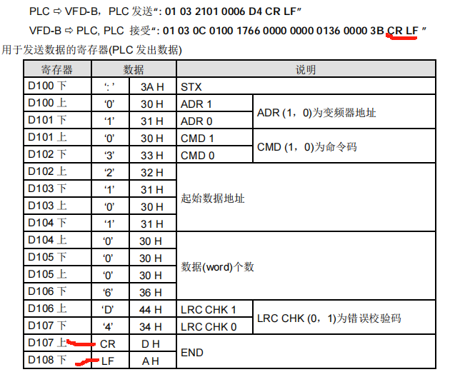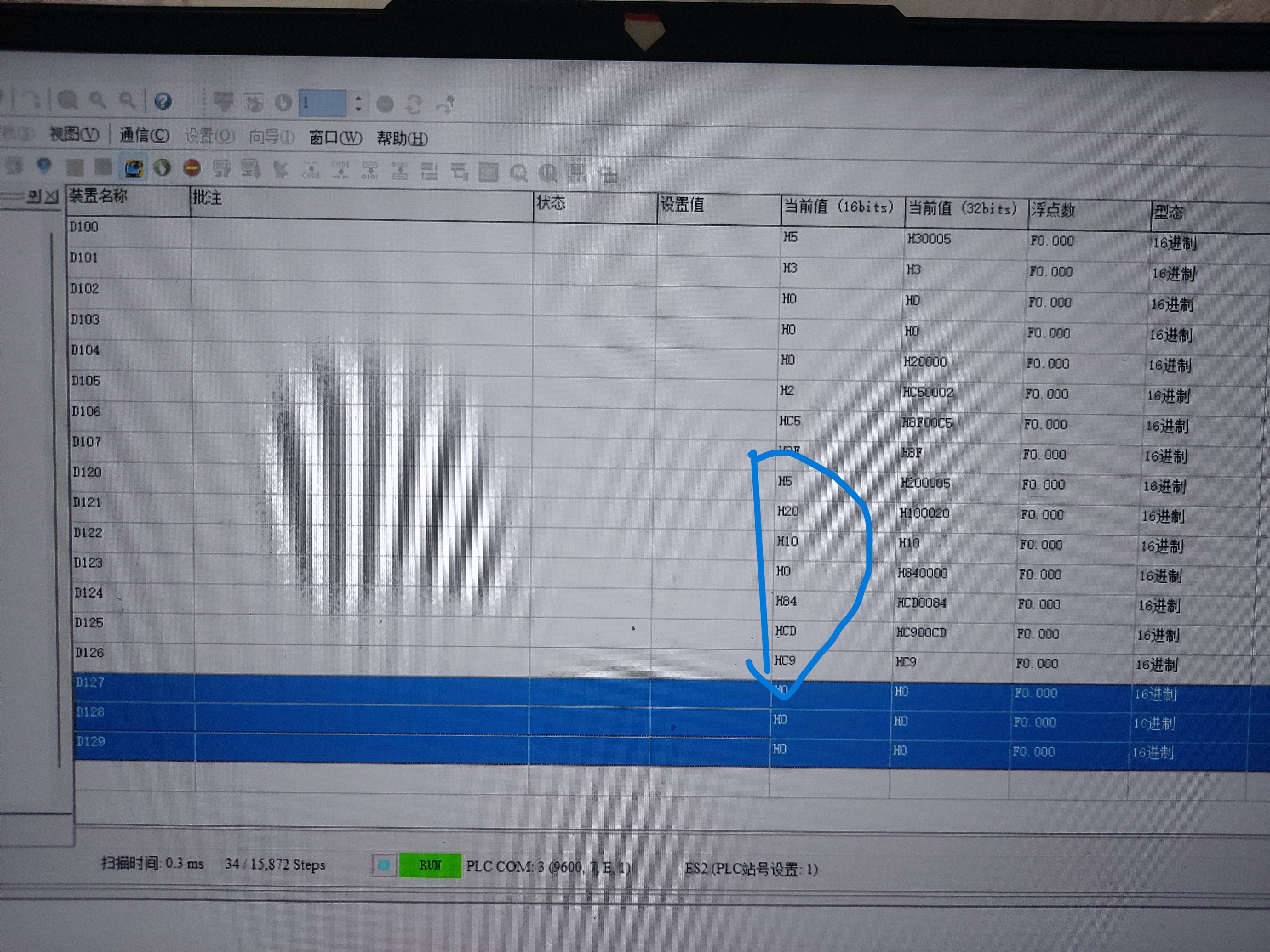 這是廠家的手冊和用MODRD指令讀出來的,嘗試多種組合數據就是不對