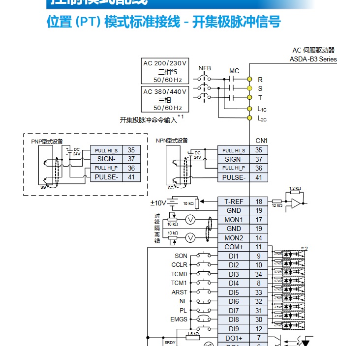 問題一 ;臺達B3有 AB相輸入差動輸入和脈沖+方向。不知B3差動輸入怎么和20GM接線(看了臺達脈沖形式和20GM不一樣)