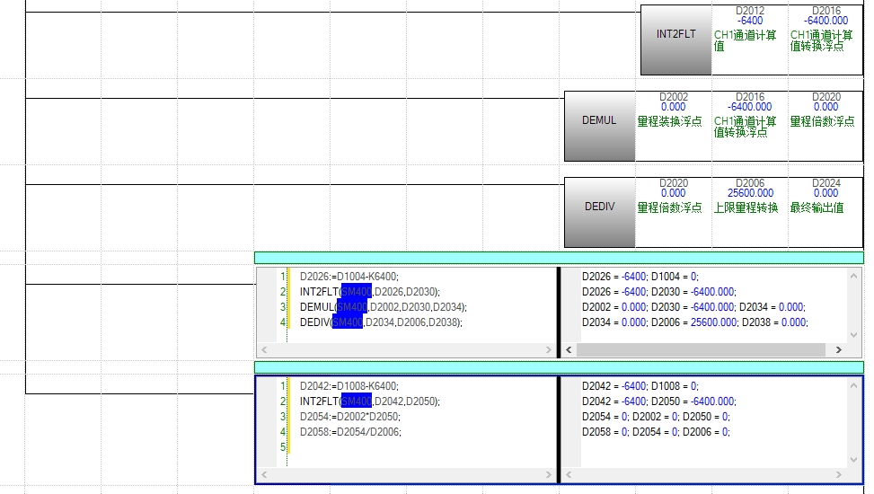 三菱的話,你還是用標簽吧,定義浮點實數和地址,這樣就可以四則計算了。