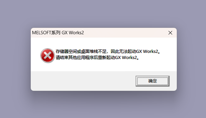 GX-Works2安裝完打開文件,報“存儲器空間或桌面堆棧不足”怎么處理?