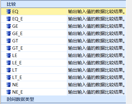 引用引用第4樓sunzengli于2025-03-24 11:45發(fā)表的 Re:Re:Re:三菱PLC 結(jié)構(gòu)化梯形圖/FBD 比較指令怎么用 :并不是,這個也可以用作整數(shù),這個是所有的比較。GE也有,看圖。