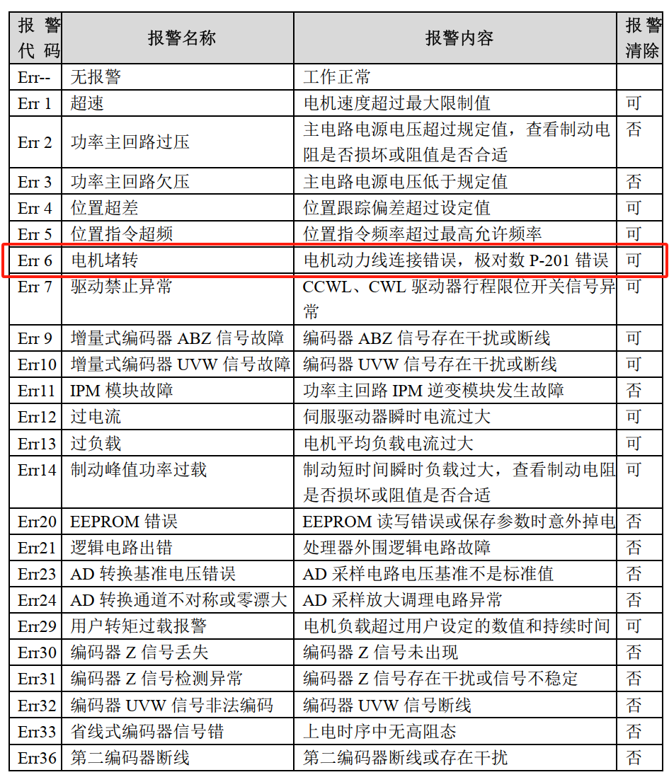 你這個驅動器具體哪個型號的,我找到個Tx3系列的驅動器的說明書,通航的,Err6是堵轉了,還有檢查電機線路